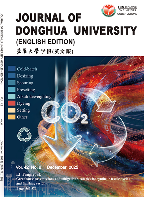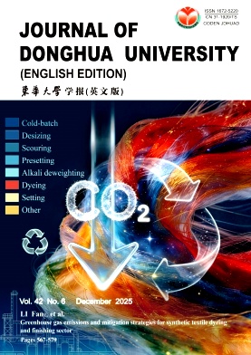 XIAO Yongbing , XU Chaochen , SHEN Wufeng , ZHANG Shengming , CHEN Xiangling , JI Peng, WANG Chaosheng , WANG HuapingAbstract: Polyethylene terephthalate (PET) fibers are the largest category of chemical fibers and are widely used. However, the dyeing of PET fibers requires high temperature and pressure (130 ℃ and 0. 2 MPa), and the dyeing process consumes huge amounts of energy. Existing studies have shown that the dyeing ability of PET is directly related to the size of the amorphous region, which determines the external conditions for dyeing. In this research, we synthesized a series of low-temperature easydyeing masterbatches, PET-co-polyethylene glycol (PETEG), using polyethylene glycol (PEG) with different number-average molecular masses Mn and additive amounts. The phase domain size of the amorphous region of PET fibers was regulated via the masterbatch method. The relationship between the phase domain size and dyeing performance was explored from three perspectives: theamount of masterbatch, type of masterbatch, and PEG relative molecular mass. The results indicate that the fiber sample with PEG (Mn = 2 000 g / mol) at a mass fraction of 20% modified masterbatch has a smaller crystalline lamellar thickness (5. 59 nm) and a larger interlamellar amorphous layer thickness (6. 43 nm). The increase in the long periodand lamellar inclination angle results in a looser structure, allowing small molecule dyes to diffuse into the fibers more easily. The dye-uptake increases from 63. 21% to 92. 66% at100 ℃ with the addition of the masterbatch. Additionally, the dye-uptake of the modified fibers increases with the relative molecular mass of PEG and the mass fraction of the masterbatch. All modified fibers achieve a staining color fastness of grade 4 or higher. This research demonstrates a simple masterbatch method that enables atmospheric pressure dyeing and provides a practical solution for efficient, low-temperature, and low-energy dyeing of PET fibers.